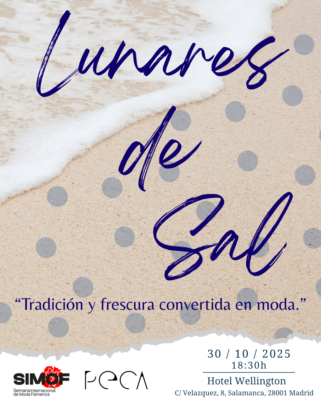 Desde la luz de las salinas y la brisa del Atlántico, PECA presenta su nueva colección: “Lunares de Sal”. Nacida en El Puerto de Santa María, esta propuesta traslada la esencia del mar gaditano al escenario de SIMOF Madrid, llevando consigo la frescura de la bahía y el carácter atemporal de la moda flamenca.